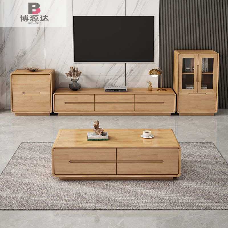 全实木茶几电视柜组合北欧现代简约小户型客厅长方形家用中式茶台