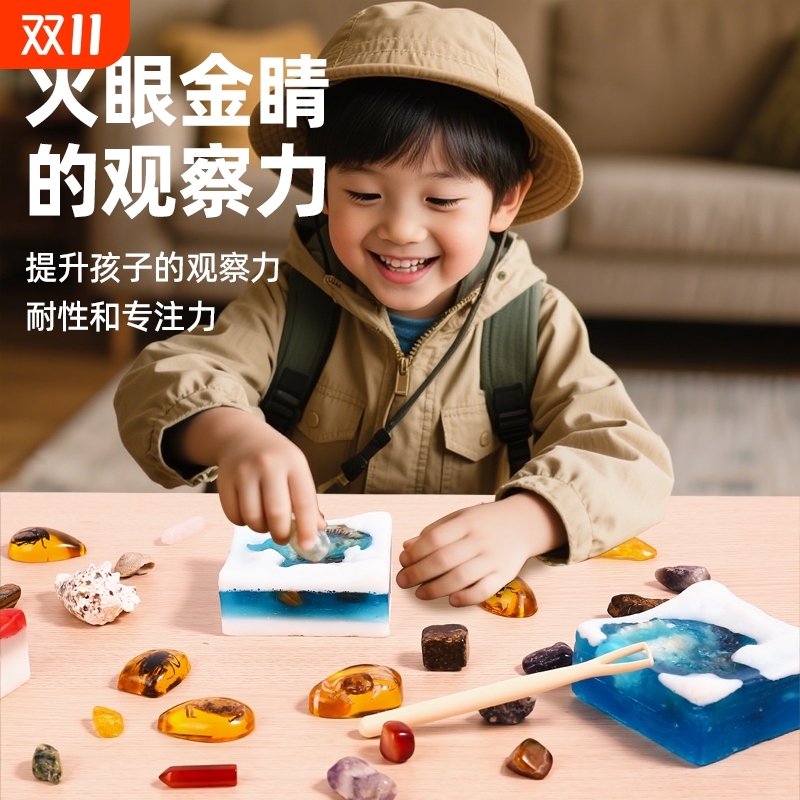 儿童考古挖掘玩具化石标本琥珀昆虫精灵盲盒男女孩手工寻宝石宝藏