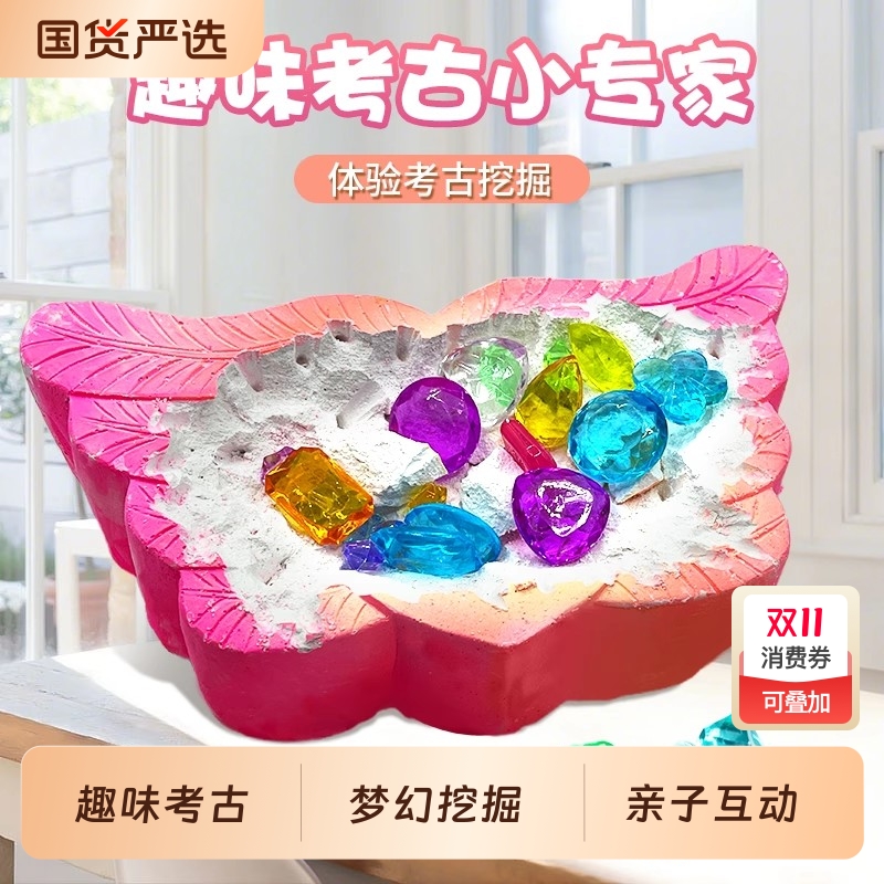 宝石考古挖掘玩具矿石敲砸化石儿童手工diy男女孩钻石寻宝藏盲盒