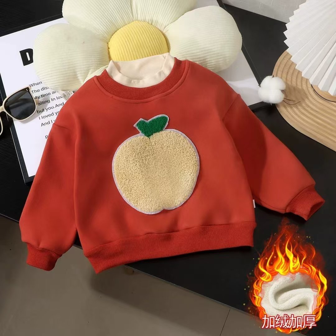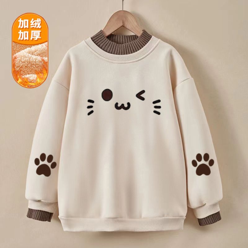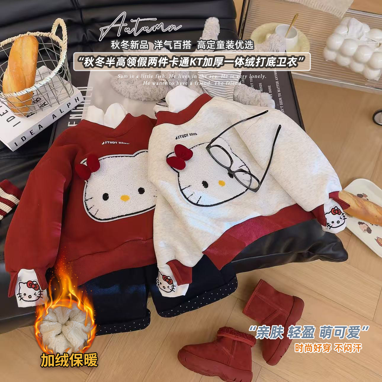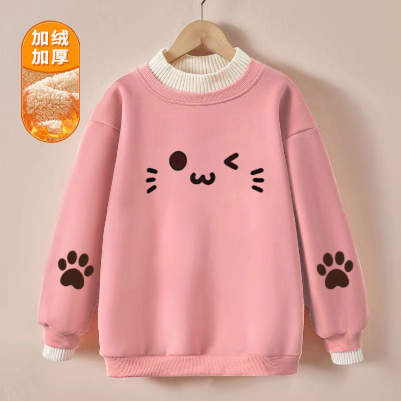 女童韩版加绒加厚半高领假两件卡通打底卫衣2025冬季新款BZZ003棒