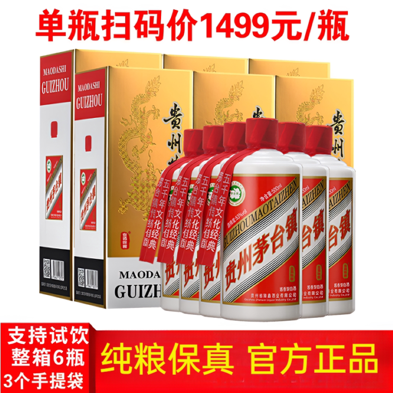 贵州酱香型白酒53度纯粮食酒原浆老酒宴请送礼酒水整箱6瓶礼盒装