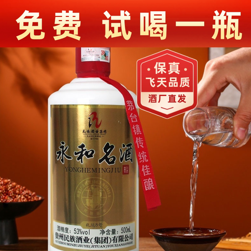 粮食酒贵州53度粮食酱香型白酒高度瓶装传统工艺高粱窖藏推广试饮