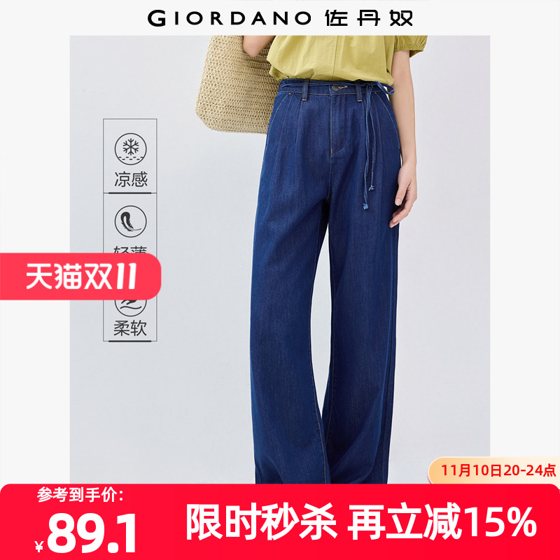 佐丹奴裤子女装黑科技凉感薄牛仔绑带半松紧腰阔腿长裤 13415205