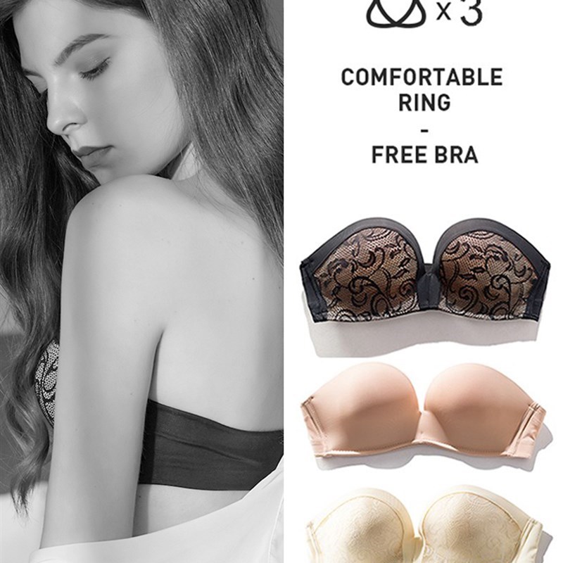 无肩带内衣女聚拢防滑蕾丝抹胸防走光美背文胸无钢圈隐形无带胸罩