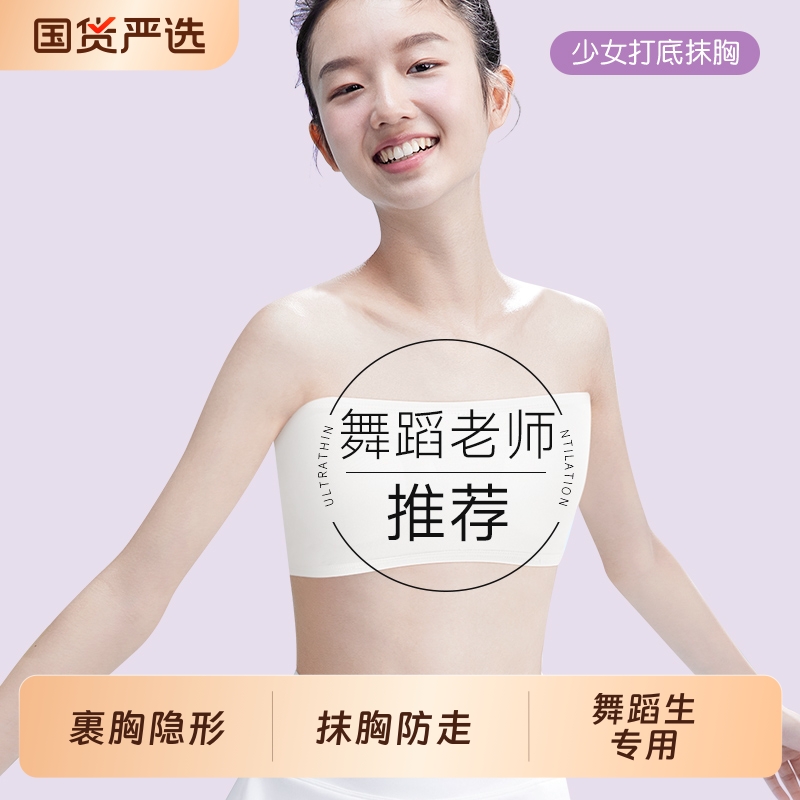 少女抹胸内衣女大童无肩带裹胸女童儿童舞蹈隐形背心跳舞无带胸垫