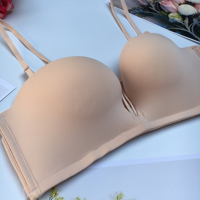无肩带文胸无带婚纱内衣女聚拢防滑上托无钢圈小胸夏加厚抹胸薄款