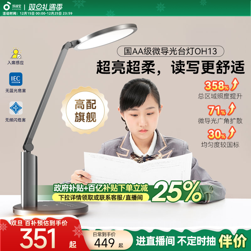欧普AAAAA护眼全光谱台灯学习专用儿童写作业书桌学生阅读近视防