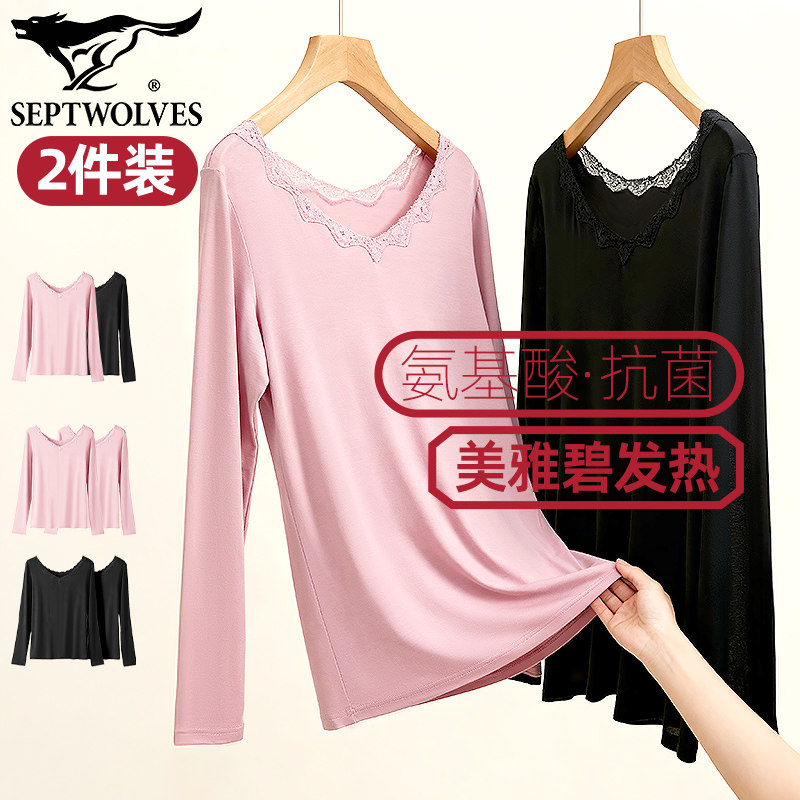 七匹狼女士性感V领蕾丝打底衫美雅碧发热保暖内衣氨基酸抗菌上衣