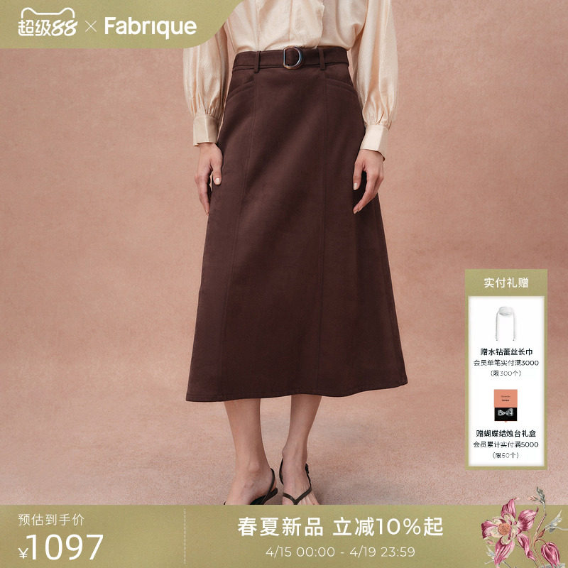Fabrique 焦糖棕空气层仿麂皮绒A型半裙新款半身裙女秋