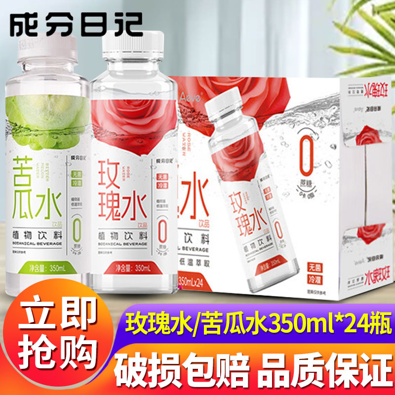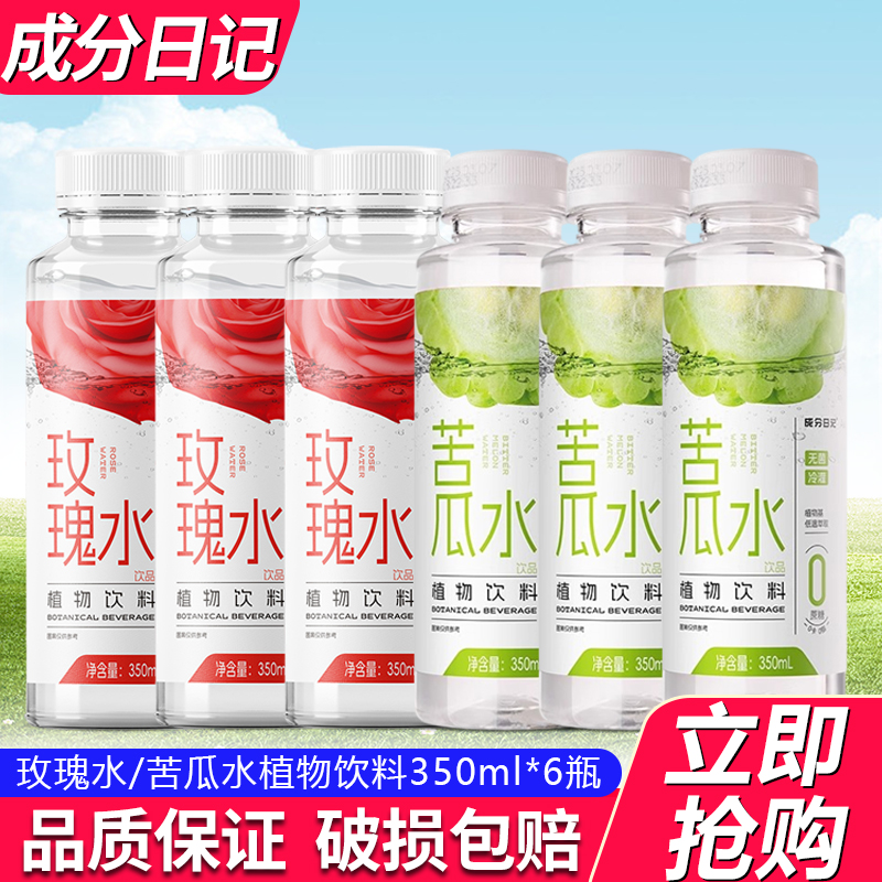 成分日记玫瑰水350ml*6瓶0蔗糖0卡0脂肪植物饮料苦瓜水植物饮品