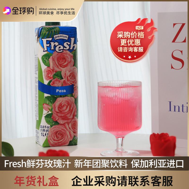 2瓶起包邮 保加利亚进口鲜芬fresh玫瑰果汁玫瑰水饮料1000ml