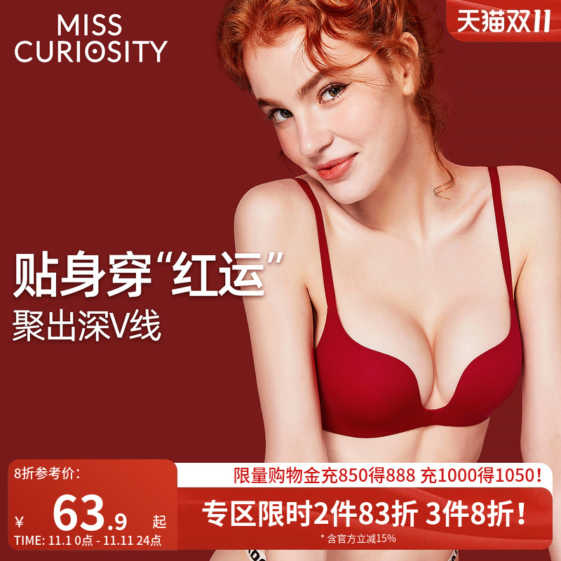 好奇蜜斯红色内衣女小胸聚拢无痕结婚蛇年本命年文胸套装性感胸罩