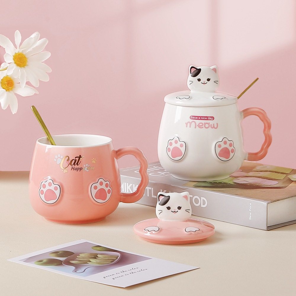 卡通可爱猫咖啡杯马克杯带不锈钢勺子早餐杯礼品杯印字定logo