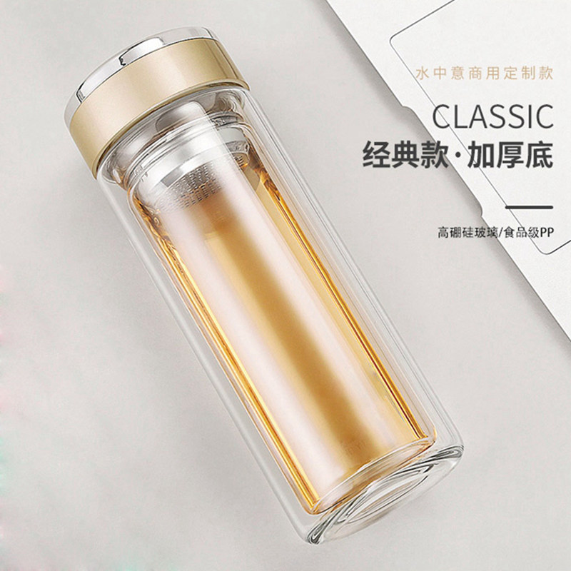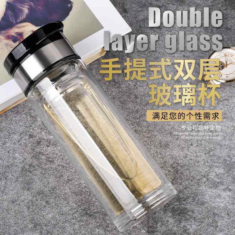 厂家便携水杯双层玻璃杯车载随手杯子广告杯礼品杯印字印logo