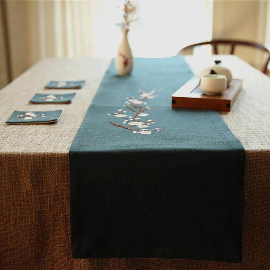 高档刺绣旗梅桌桌旗中国式禅意布艺花茶席茶几垫中风日式棉麻布茶