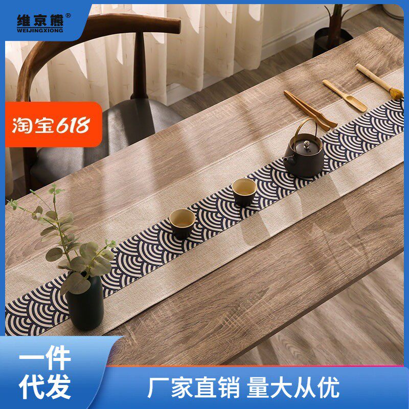 中式禅意防水棉麻布桌旗 麂皮绒茶桌布艺茶席 日式干泡茶巾垫竹席