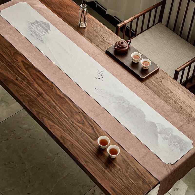 鹿皮绒防风水绘茶RVB席桌旗新中式简约桌具布彩中国棉麻布艺茶配