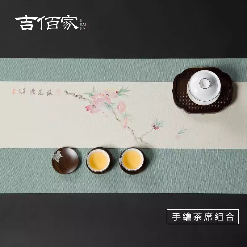 吉佰家新中式茶布茶席桌布麻布手绘防水茶禅意布艺日式桌旗干泡花