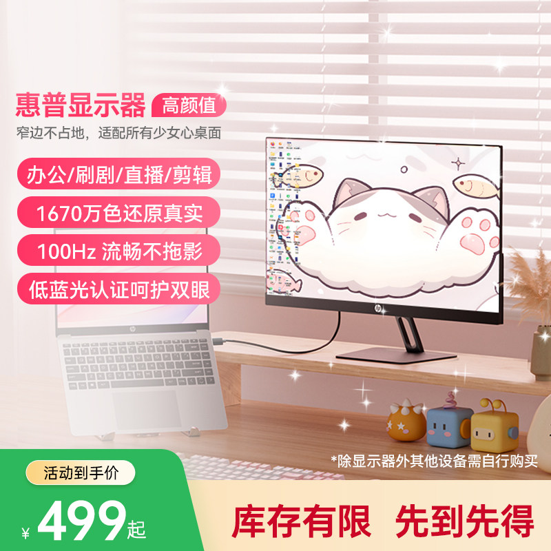 【政府补贴15%】惠普高清显示器可选2k台式电脑护眼笔记本显示屏