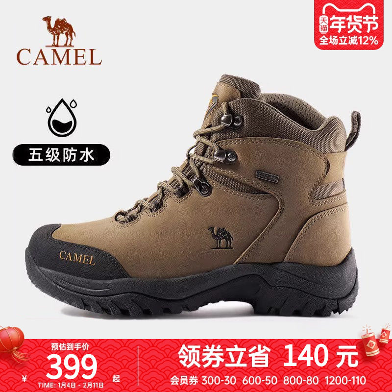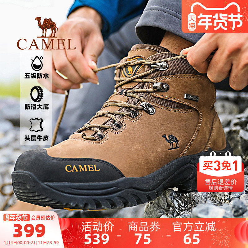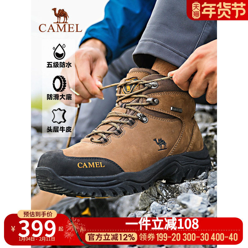 骆驼老兵户外专业登山鞋男防水防滑耐磨牛皮高帮靴女士厚底徒步鞋