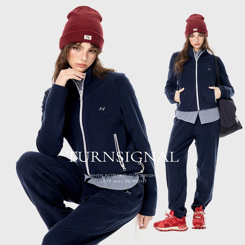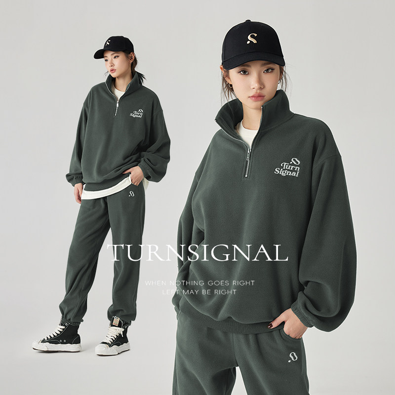 Turn Signal潮牌摇粒绒运动套装女秋冬2025新款加绒卫衣卫裤冬季