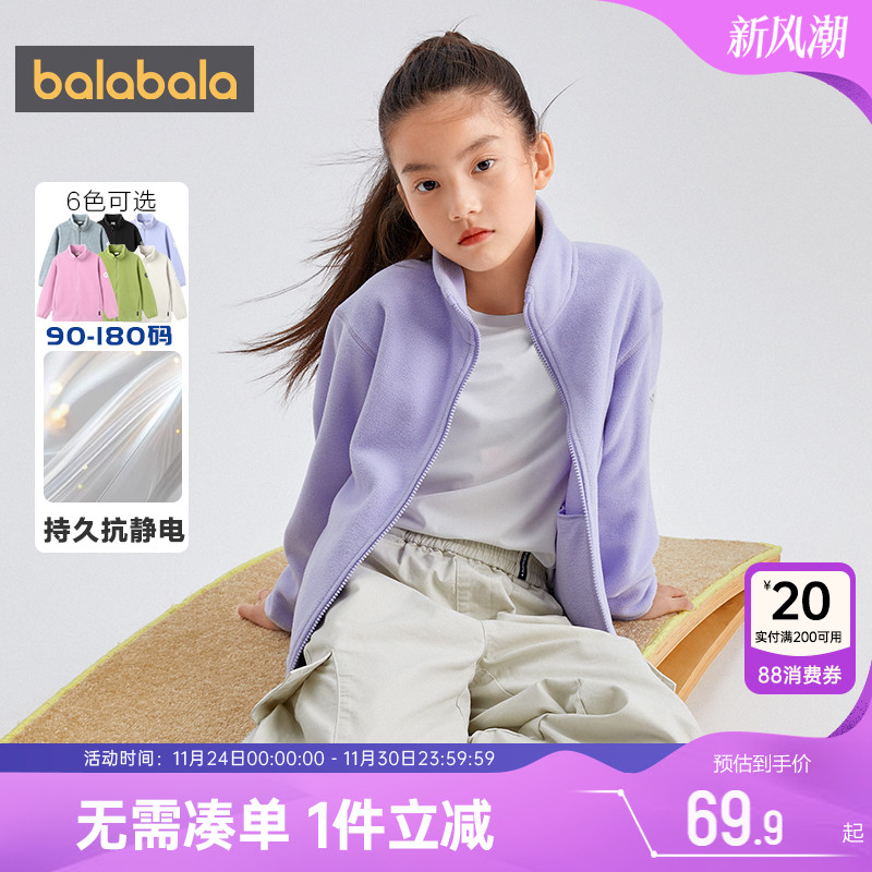 巴拉巴拉童装儿童外套春抗静电不起球男童女童保暖抓绒开衫中大童