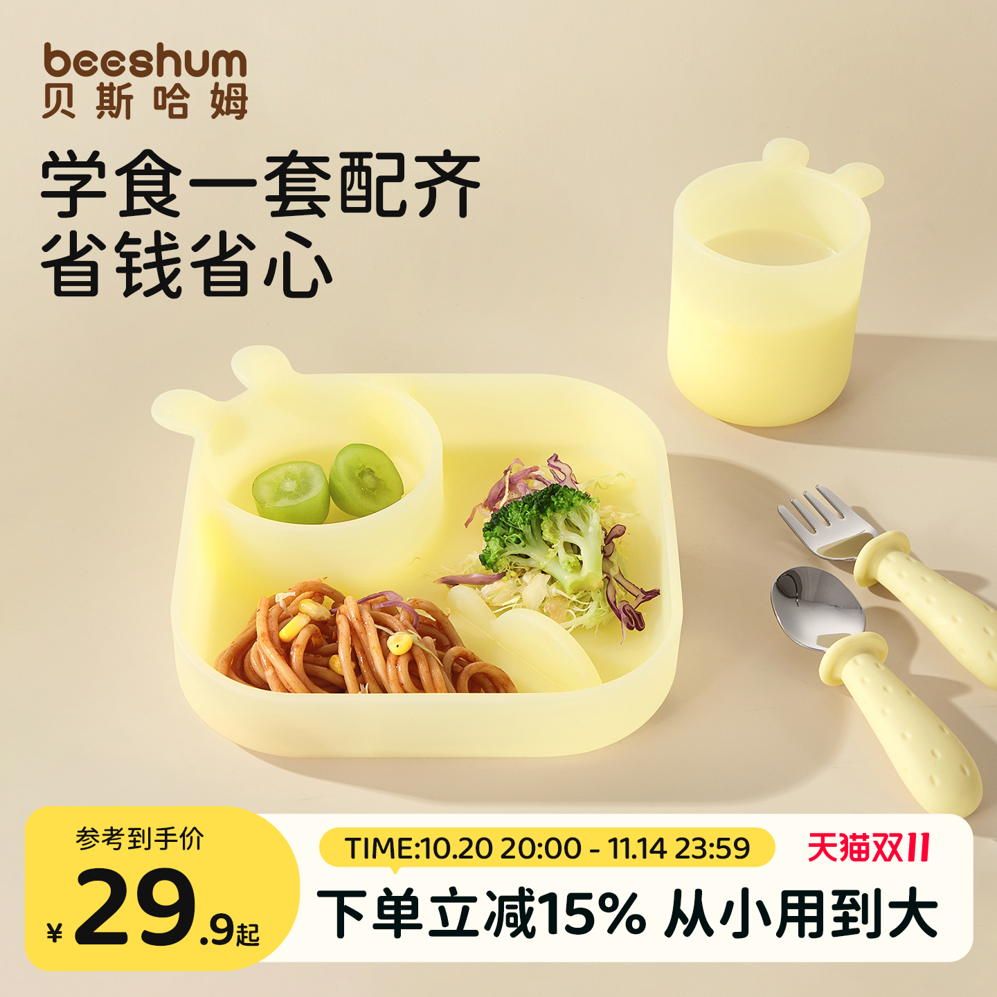 beeshum宝宝餐盘自主进食儿童餐具套装硅胶餐盘婴儿辅食盘辅食碗