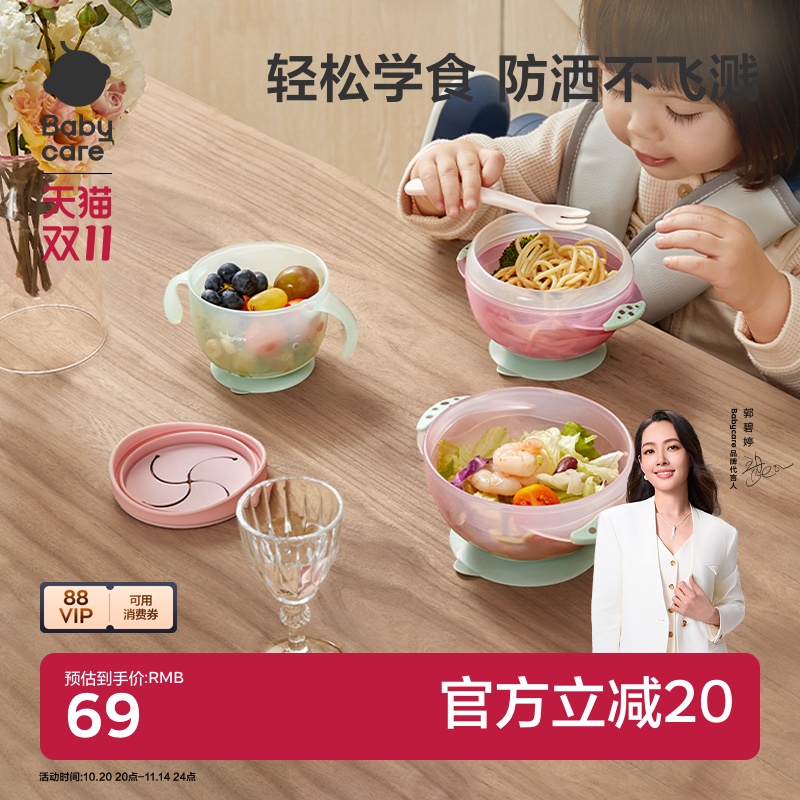 babycare宝宝辅食吸盘碗婴儿专用学吃饭碗儿童餐具套装防摔防烫