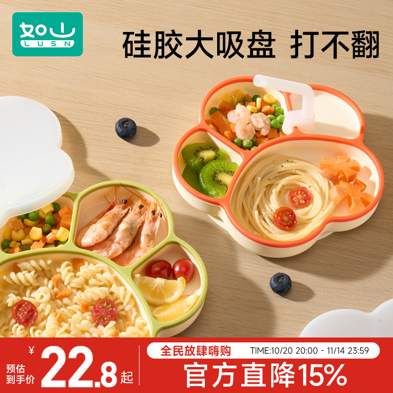 宝宝餐盘吸盘分格盘婴儿硅胶吸管辅食碗吃饭训练勺子儿童餐具套装