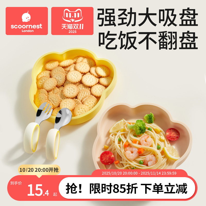 宝宝餐盘硅胶吸盘一体式婴儿辅食碗小孩餐具吃饭专用儿童餐具套装