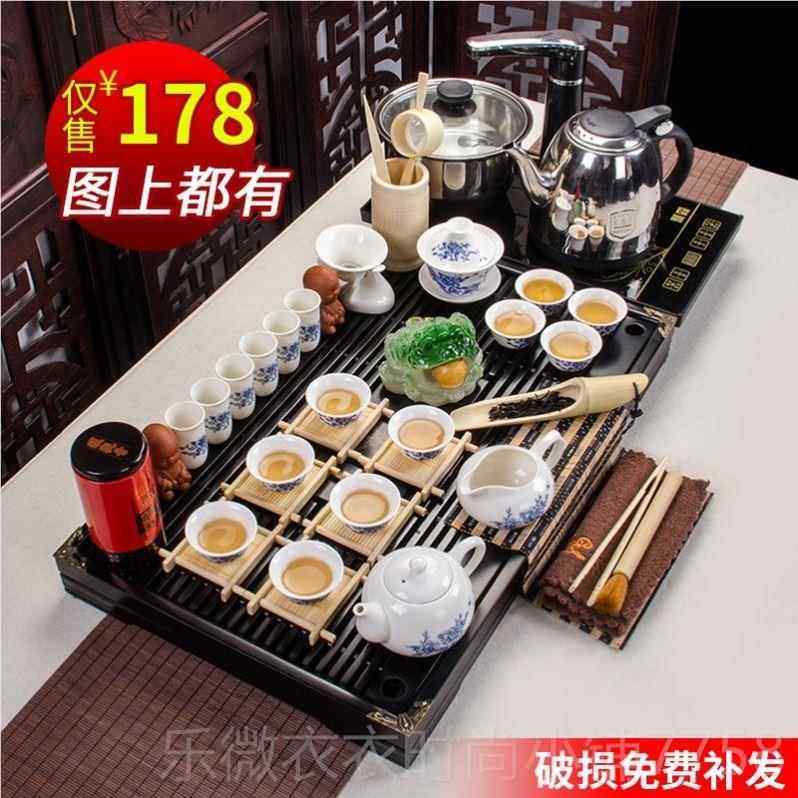 茶具茶台一整套功夫套装家用特价紫砂陶瓷实木茶盘茶杯全自动小型