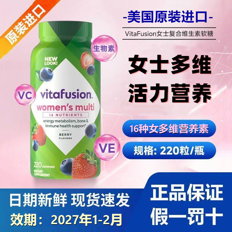保税现货/美国Vitafusion女士复合维生素软糖220粒成人女多维营养