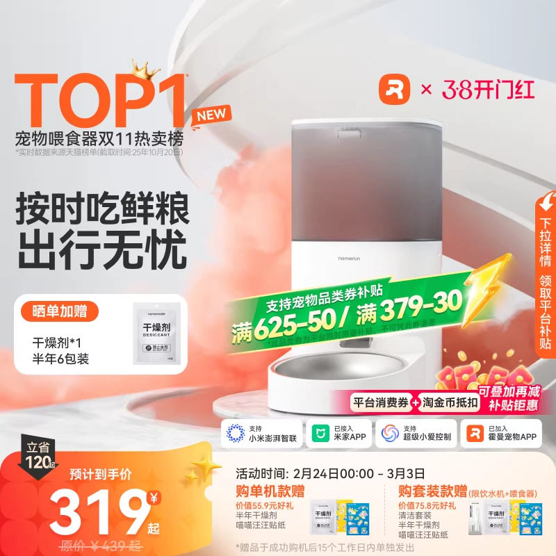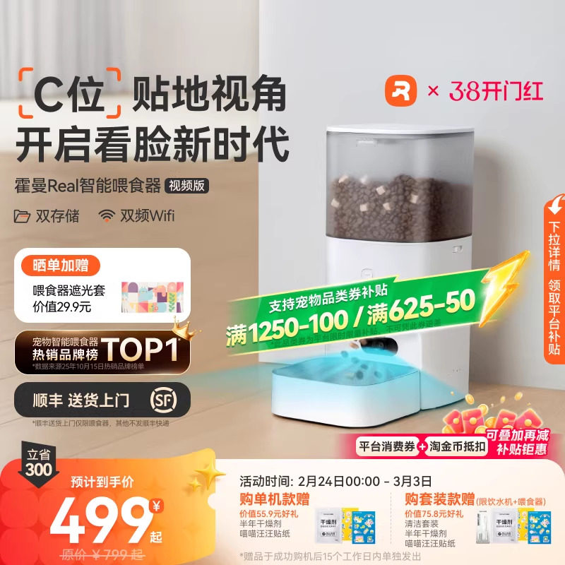 霍曼Real自动喂食器猫咪定时定量智能宠物猫粮狗粮远程控制投喂机