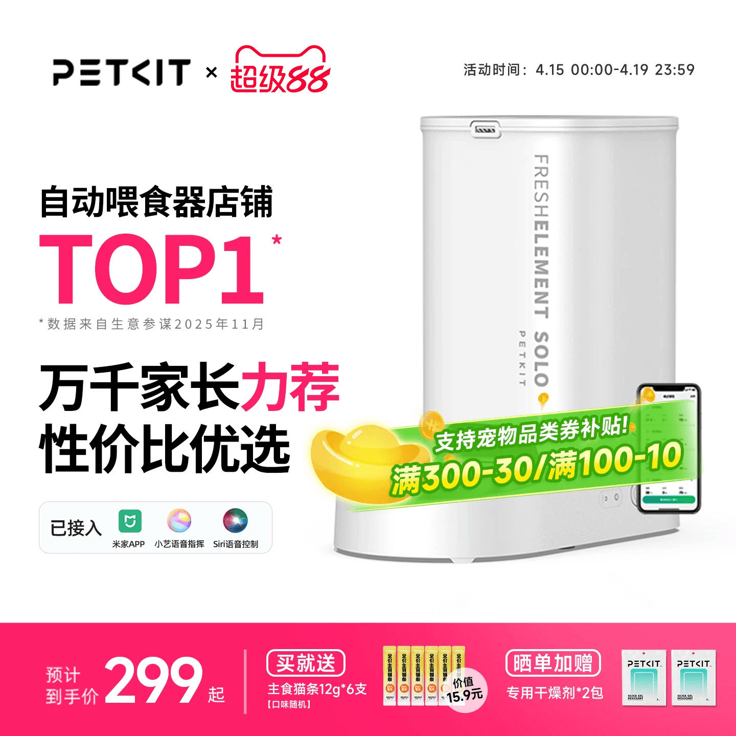 小佩自动喂食器干燥剂宠物智能猫咪投食机狗狗投食器防潮湿保鲜剂