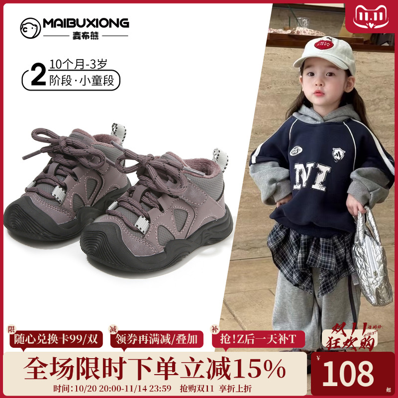麦布熊宝宝运动鞋软底婴儿鞋子男童秋冬季儿童鞋加绒休闲女童棉鞋
