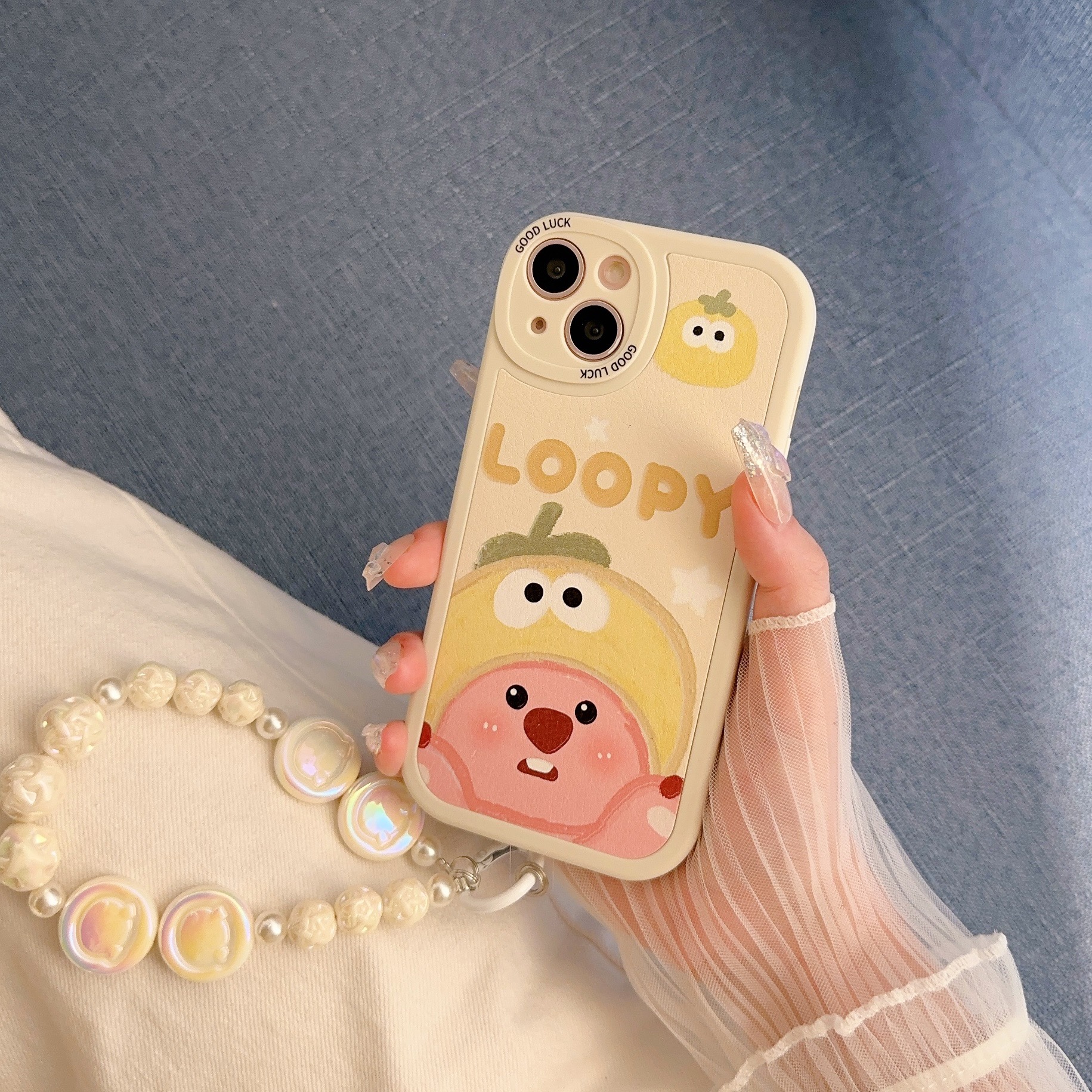 卡通柠檬海狸适用苹果15手机壳xs新款14promax女17挂绳11pro硅胶16/8p小众6plus高级x苹果12趣味13pro保护套