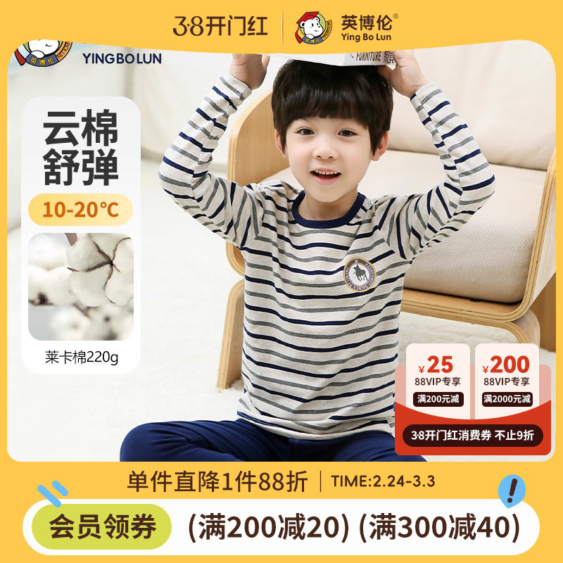英博伦儿童内衣套装纯棉男童秋衣秋裤全棉小男孩睡衣中大童棉毛衫