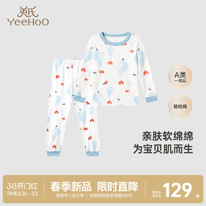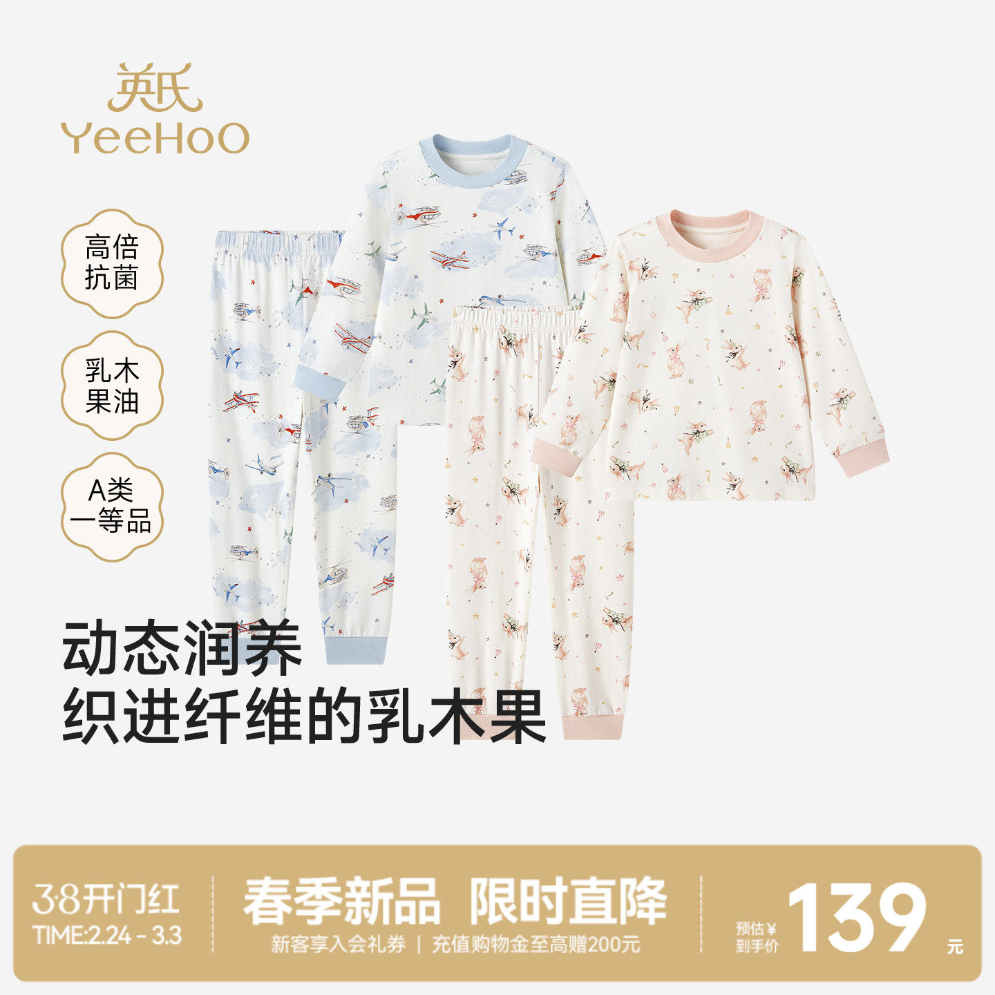 英氏儿童睡衣春季男童秋衣秋裤女童家居服春秋款宝宝内衣套装秋冬