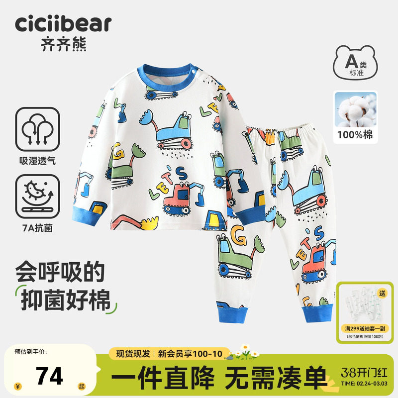 [7A抗菌纯棉]齐齐熊宝宝内衣套装春秋款男童家居服儿童睡衣两件套