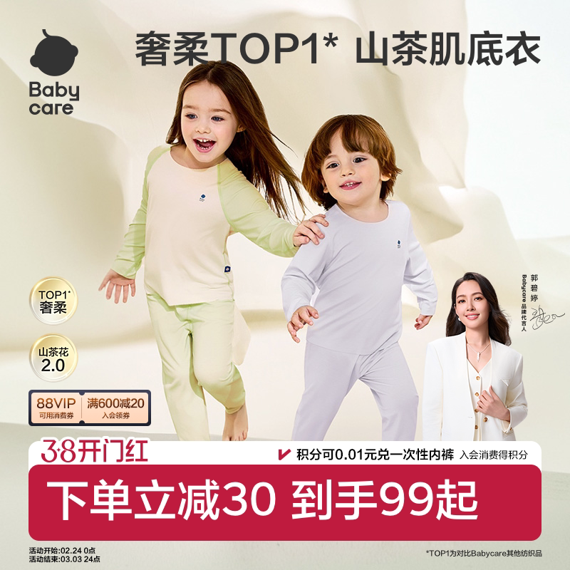 babycare山茶花宝宝女童秋衣秋裤男童婴儿睡衣儿童保暖内衣套装