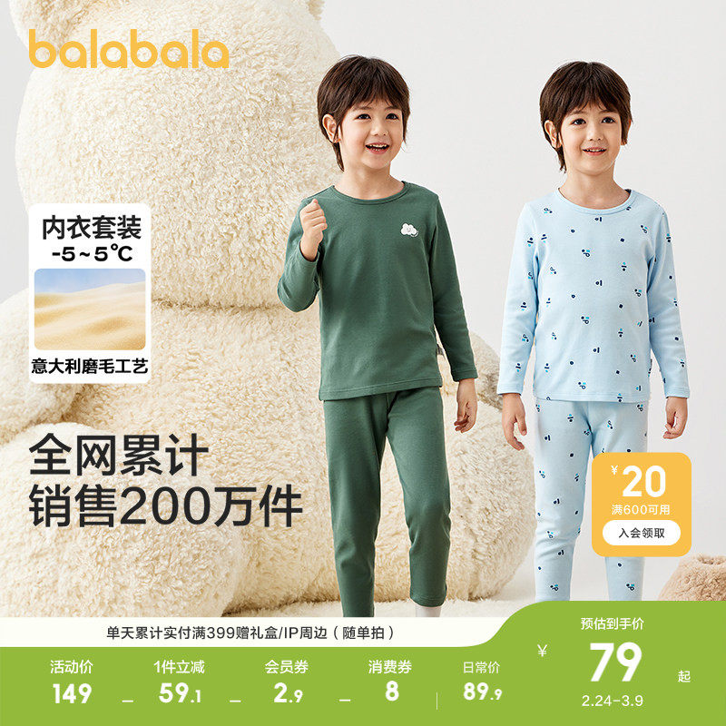 巴拉巴拉男童保暖内衣套装秋冬加厚儿童秋衣秋裤小童大童打底睡衣