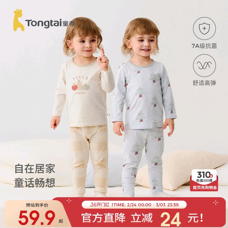 童泰宝宝秋衣套装春秋季婴儿衣服男童女童秋裤儿童内衣睡衣家居服