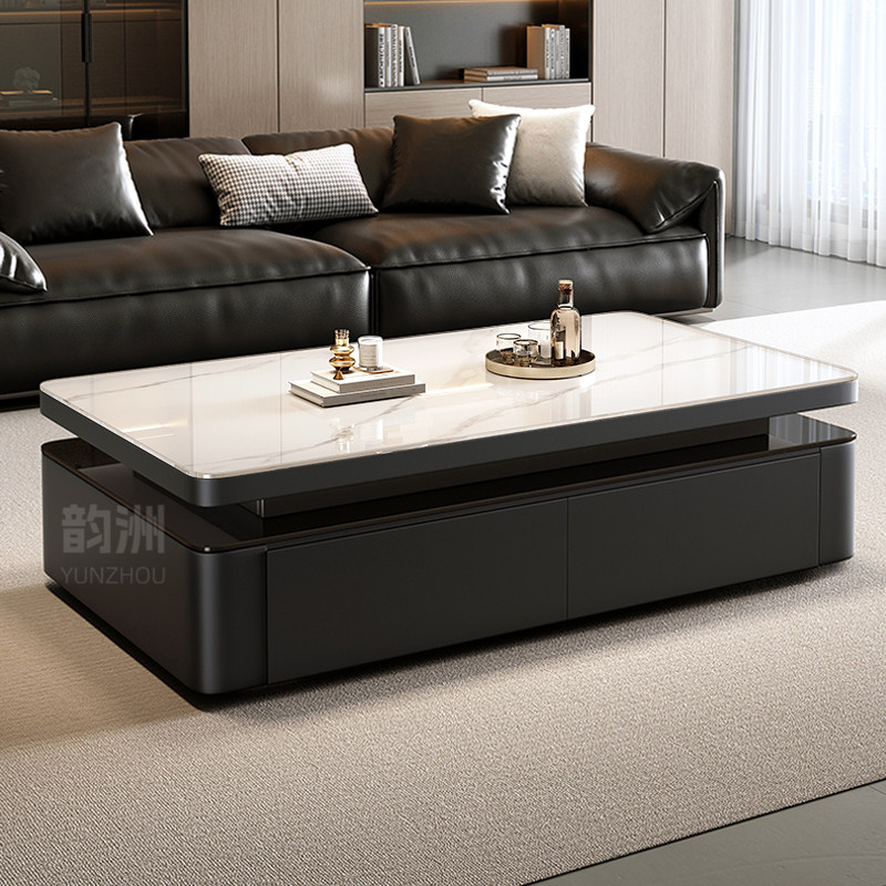 升降茶几实木餐桌多功能客厅二合一饭桌一体两用岩板可移动折叠桌