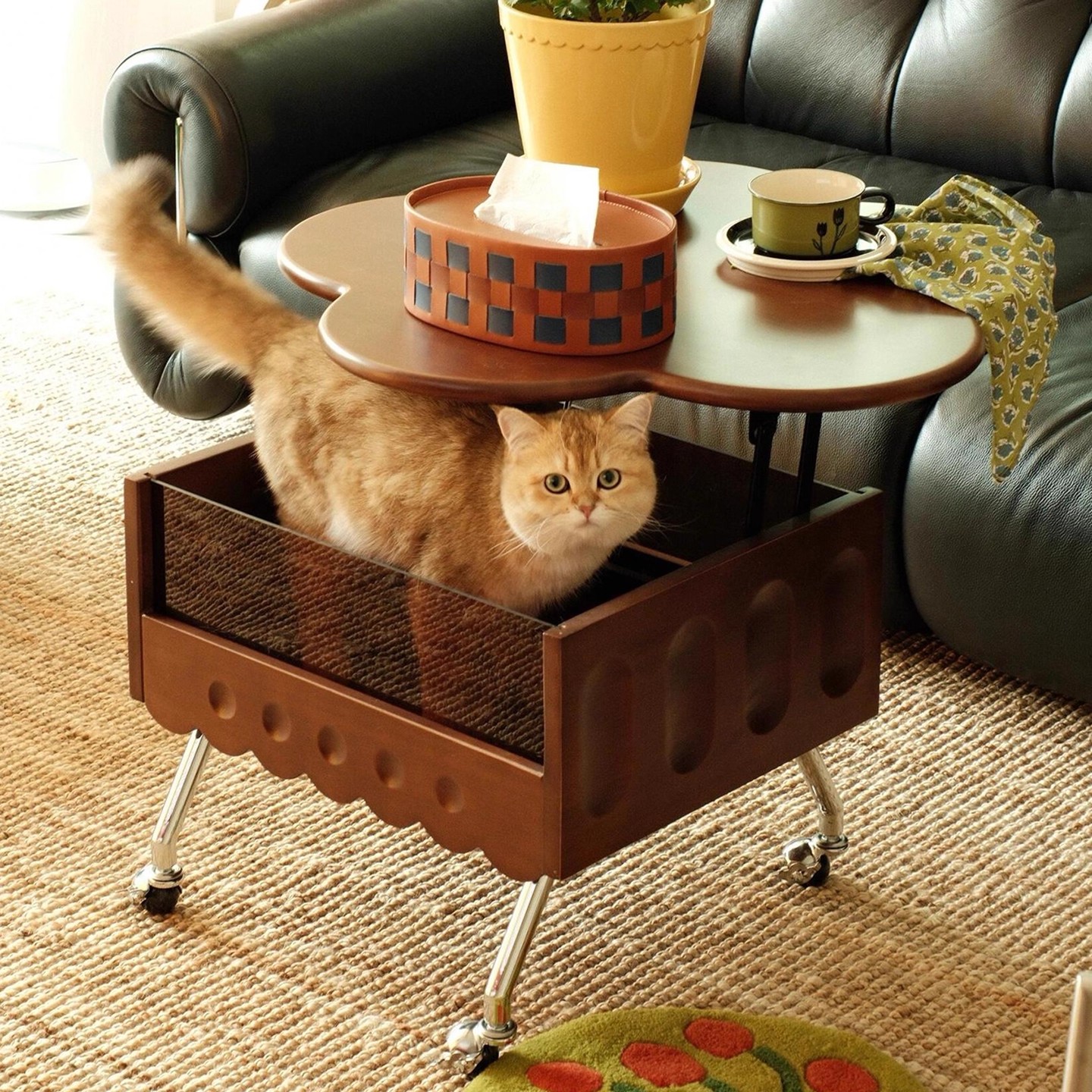 升降茶几可移动边几推车实木巴士边几带轮茶桌多功能折叠餐桌两用