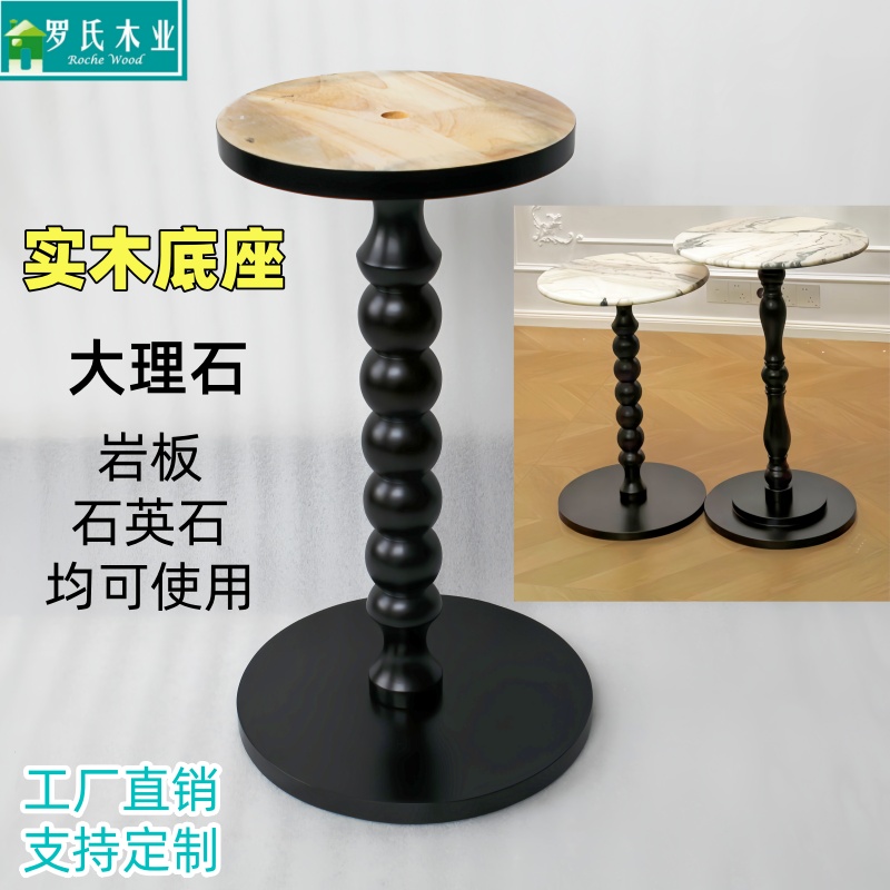 法式实木茶几自制dly大理石岩板小圆桌咖啡边几角几支撑岛台底座