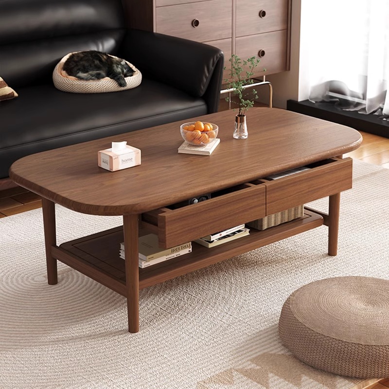 实木茶几客厅家用2025新款胡桃双层茶几桌北欧简约小户型轻奢茶台