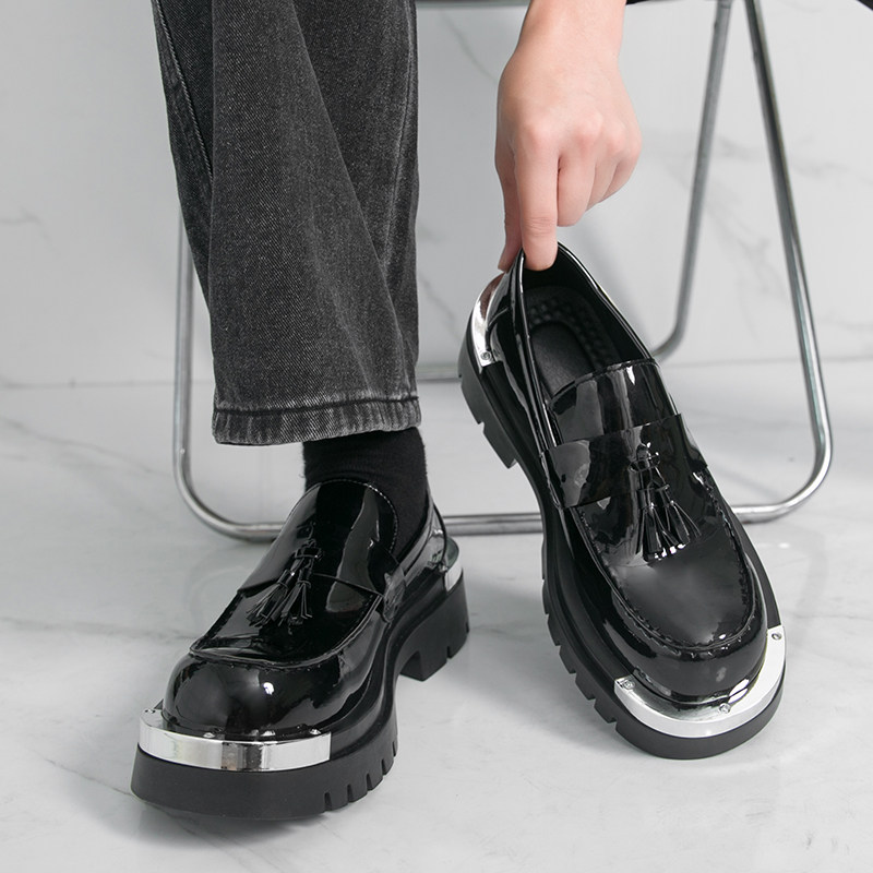 2024夏季百搭男士乐福鞋男社会人韩版懒人休闲鞋子发型师亮皮皮鞋