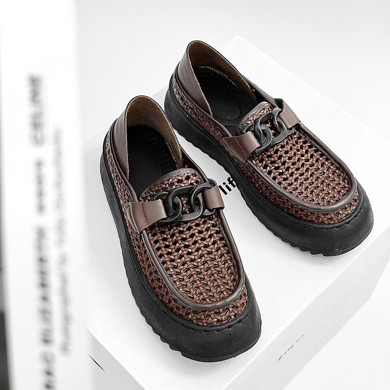 高端羊皮乐福鞋厚底夏季镂空透气韩版时尚休闲手工皮鞋男真皮缝线