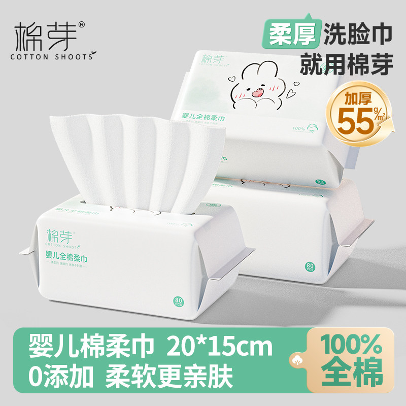棉芽全棉洗脸巾壁挂式一次性纯棉加厚加大棉柔巾悬挂式擦脸洁面巾