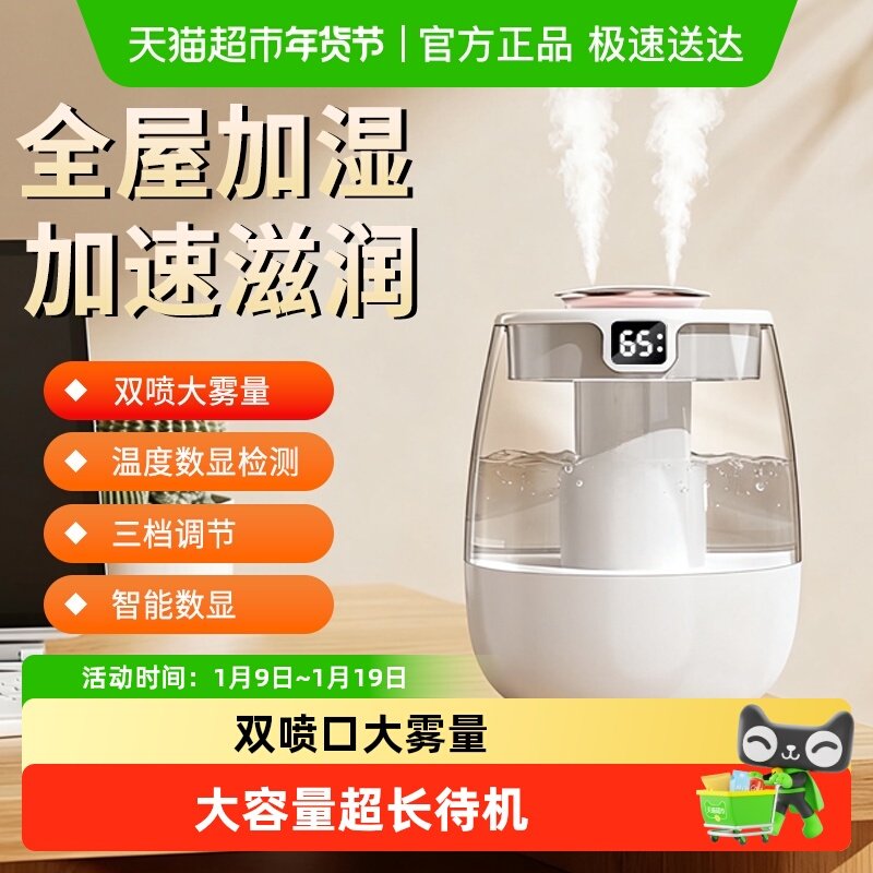【双核补水】6.8L大容量数显静音双喷加湿器小型家用卧室孕妇婴儿空气净化办公室桌面便携usb充电氛围灯喷雾